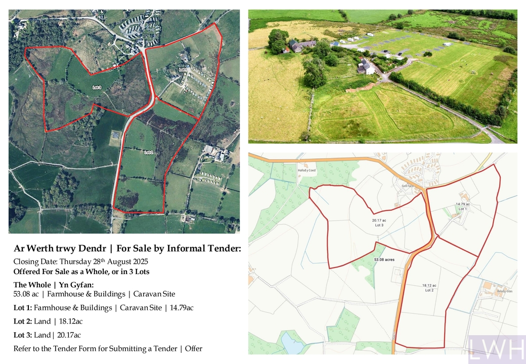 Ar Werth trwy Dendr | For Sale by Informal Tender - Closing Date: Thursday 28th August 2025 | Offered For Sale as a Whole, or in 3 Lots: