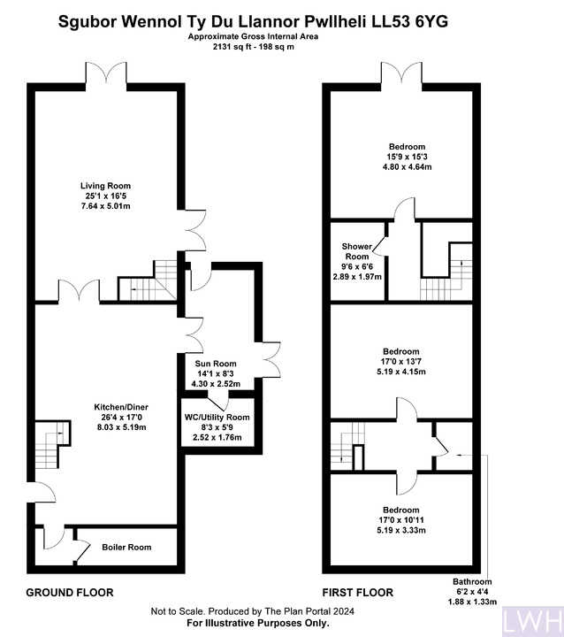 The first floor is divided in two, a staircase from the living room leads to the master suite, with ensuite and Juliet balcony overlooking the adjoining land with far reaching views, including Bardsey Island in the distance. The remaining two bedrooms and family bathroom are located above the kitchen, accessed via their own staircase.